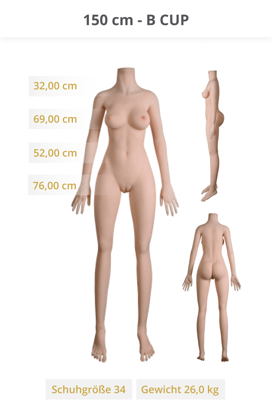 Sexpuppengröße in cm Gewicht in kg kompletter Busen in cm Taille in cm Hüfte in cm Schuhgröße