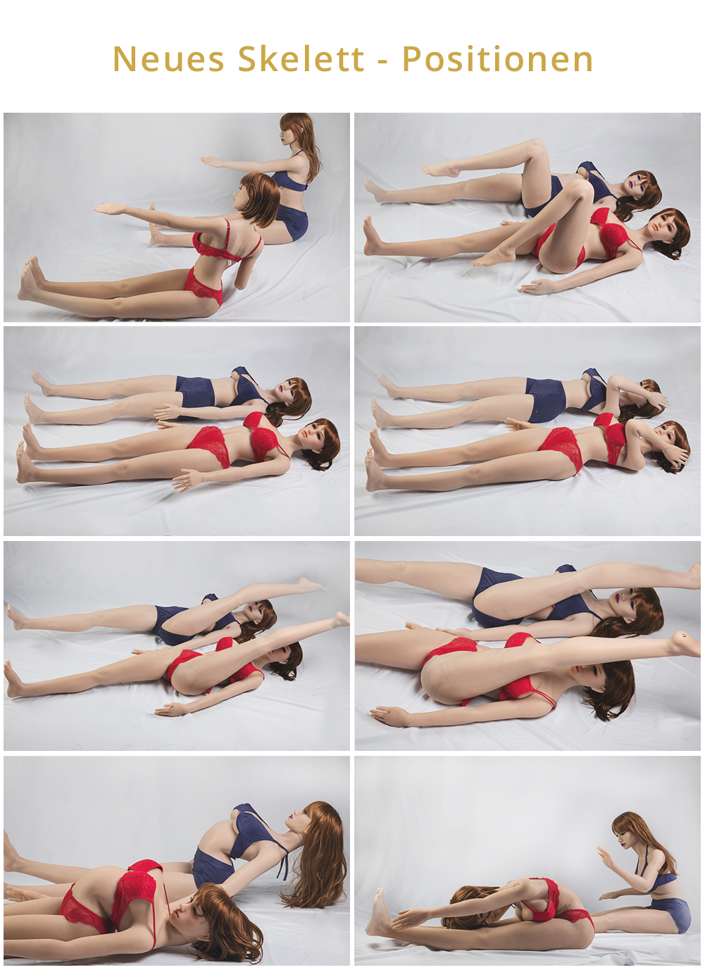 Das neue Premium Skelett von Sanhui ermöglich eine sehr lebensnahe Bewegungsform für Deine Real Doll. Eine Abbildung der Bewegungsmöglichkeiten findest Du in der Bildergalerie Deiner Liebespuppe.