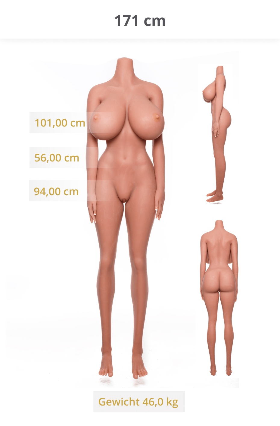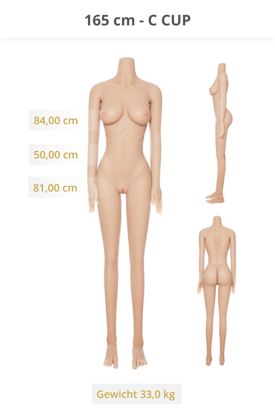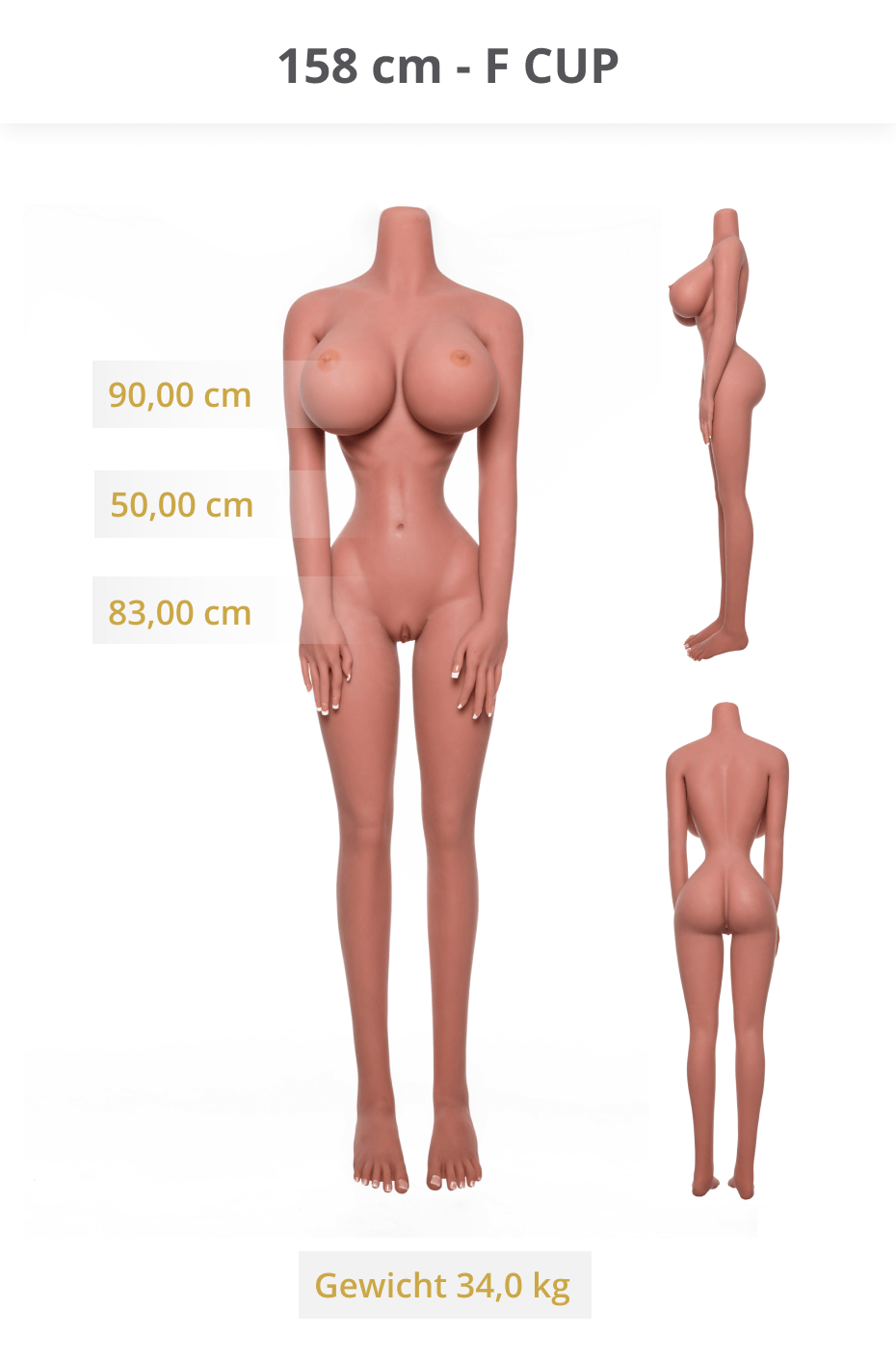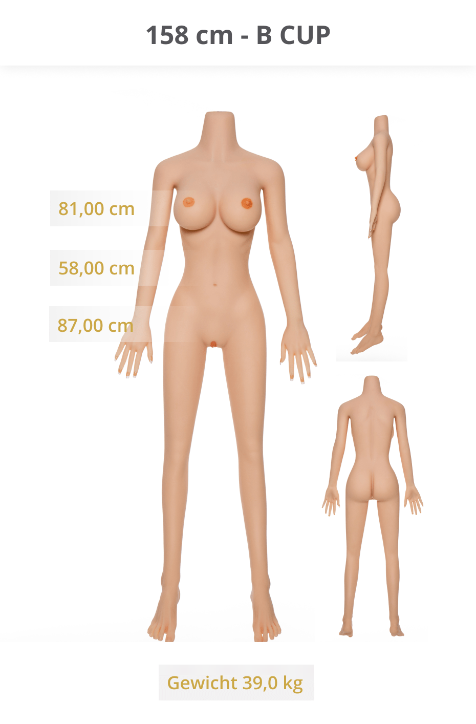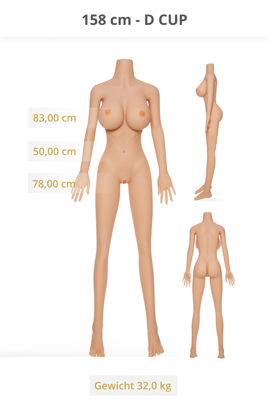 Sexpuppengröße in cm Gewicht in kg kompletter Busen in cm Taille in cm Hüfte in cm