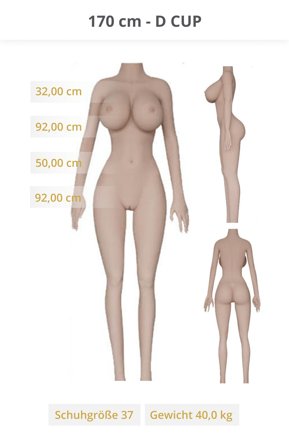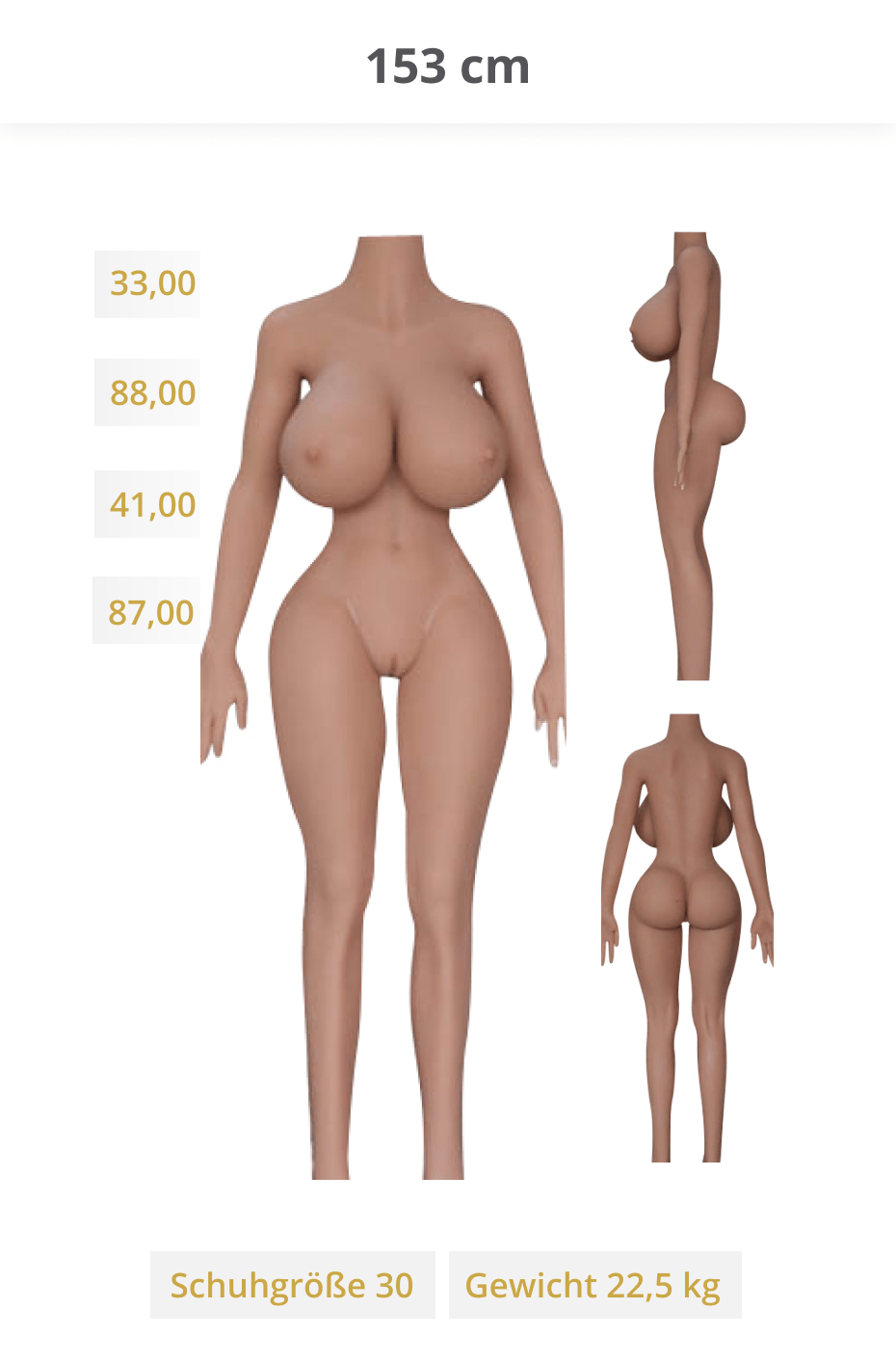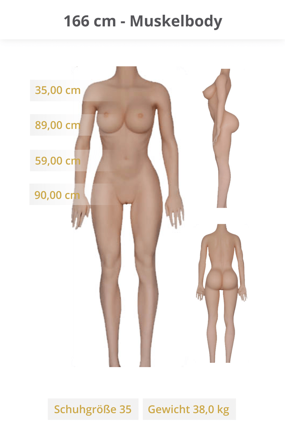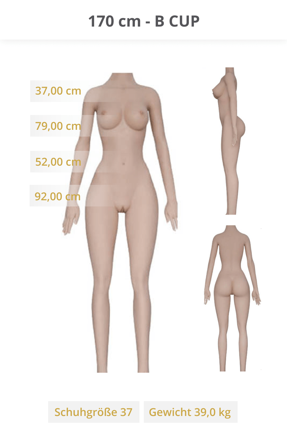 Sexpuppengröße in cm Gewicht in kg kompletter Busen in cm Breite der Schultern in cm Taille in cm Hüfte in cm Schuhgröße