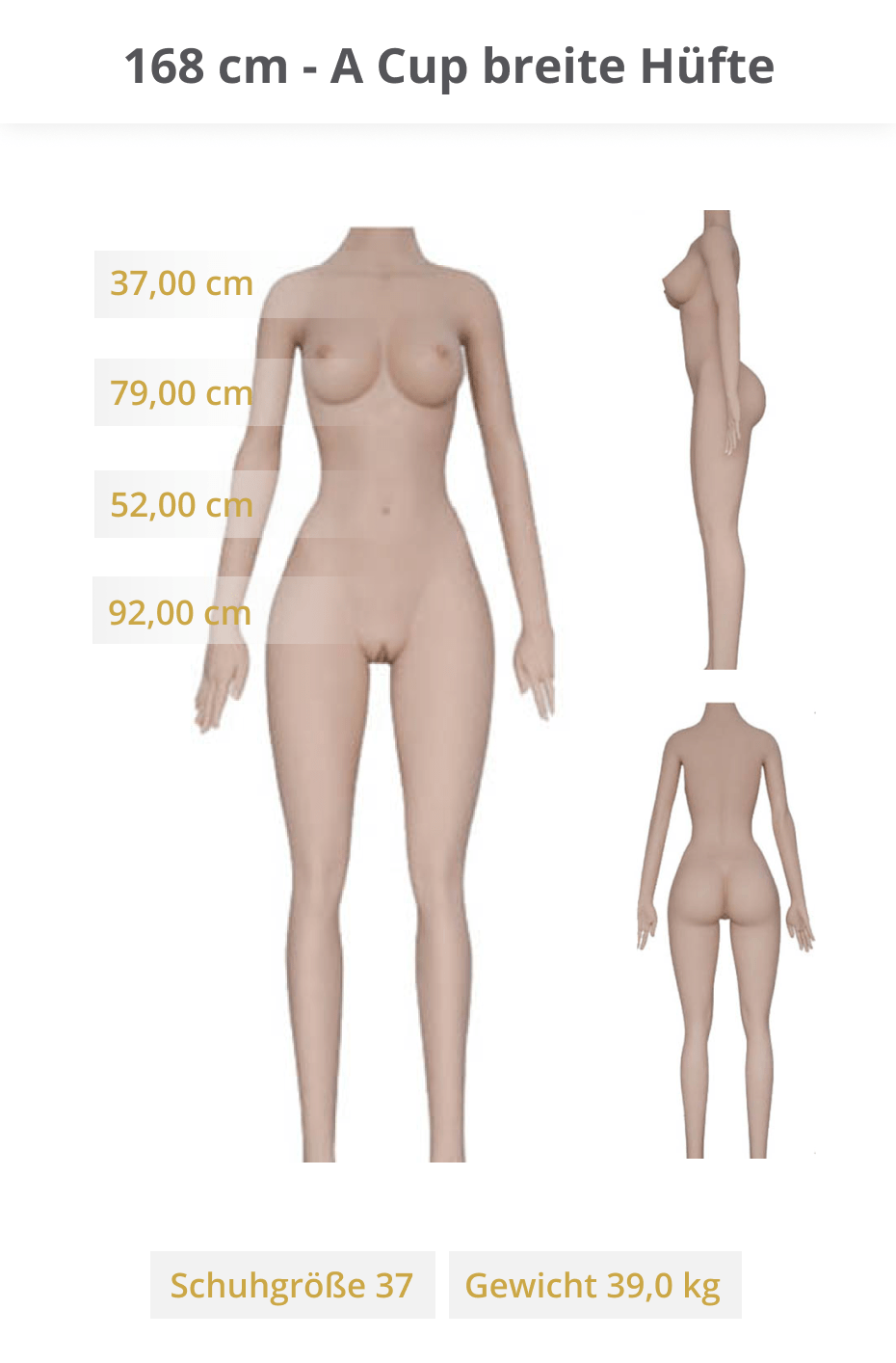 168 cm - A Cup | breite Hüfte  39,00  79,00  37,00  52,00  92,00  37