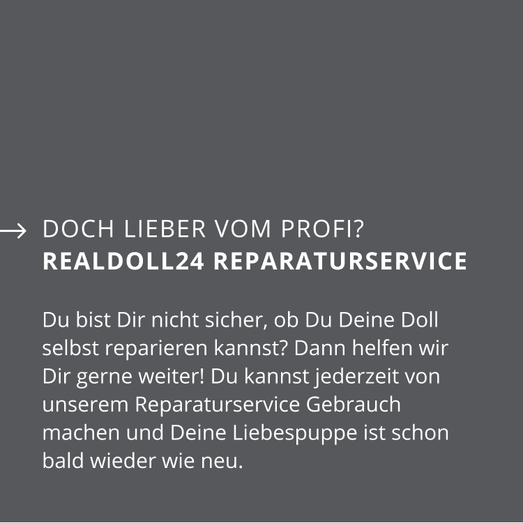 Damit Deine Real Doll bei Dir ein gemütliches neues Zuhause findet, solltest Du natürlich auf ihre Sicherheit achten. Und falls es doch mal zu einer kleineren Verletzung auf der TPE-Haut Deiner Liebespuppe kommen sollte, kennst Du als fürsorglicher Doll-Liebhaber genau das Richtige Mittel: Den TPE-Klebstoff von Real Doll! Diesen speziell für TPE-Material geschaffenen Klebstoff gibt es nur exklusiv hier bei Real Doll. Bei kleineren Wunden ist er das perfekte Heilmittel für Sexpuppen aus TPE.