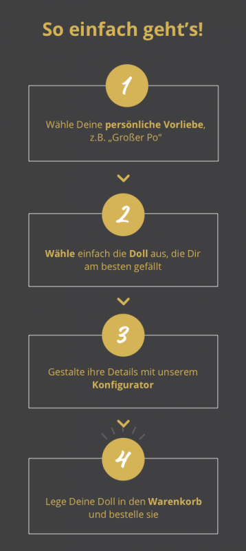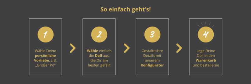 Wir helfen Dir gerne weiter! Nutze unser Kontaktformular, oder ruf uns an. Wenn Du gerne wissen möchtest, wie sich ein Doll anfühlt, bestell Dir unsere kostenlose Anfassprobe oder besuche unseren Showroom.