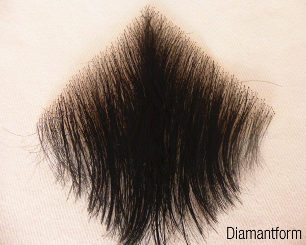 • synthethisches Haar in eine durchsichtige Netzrückseite genäht